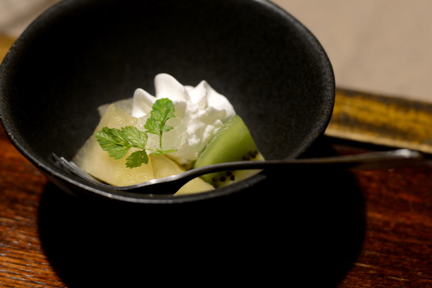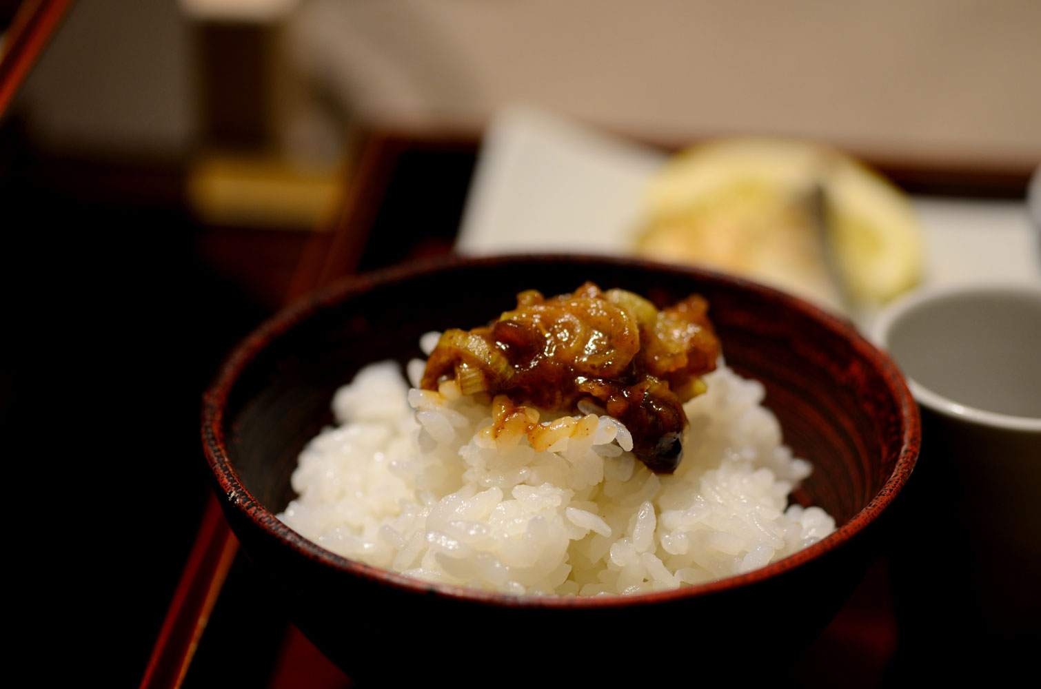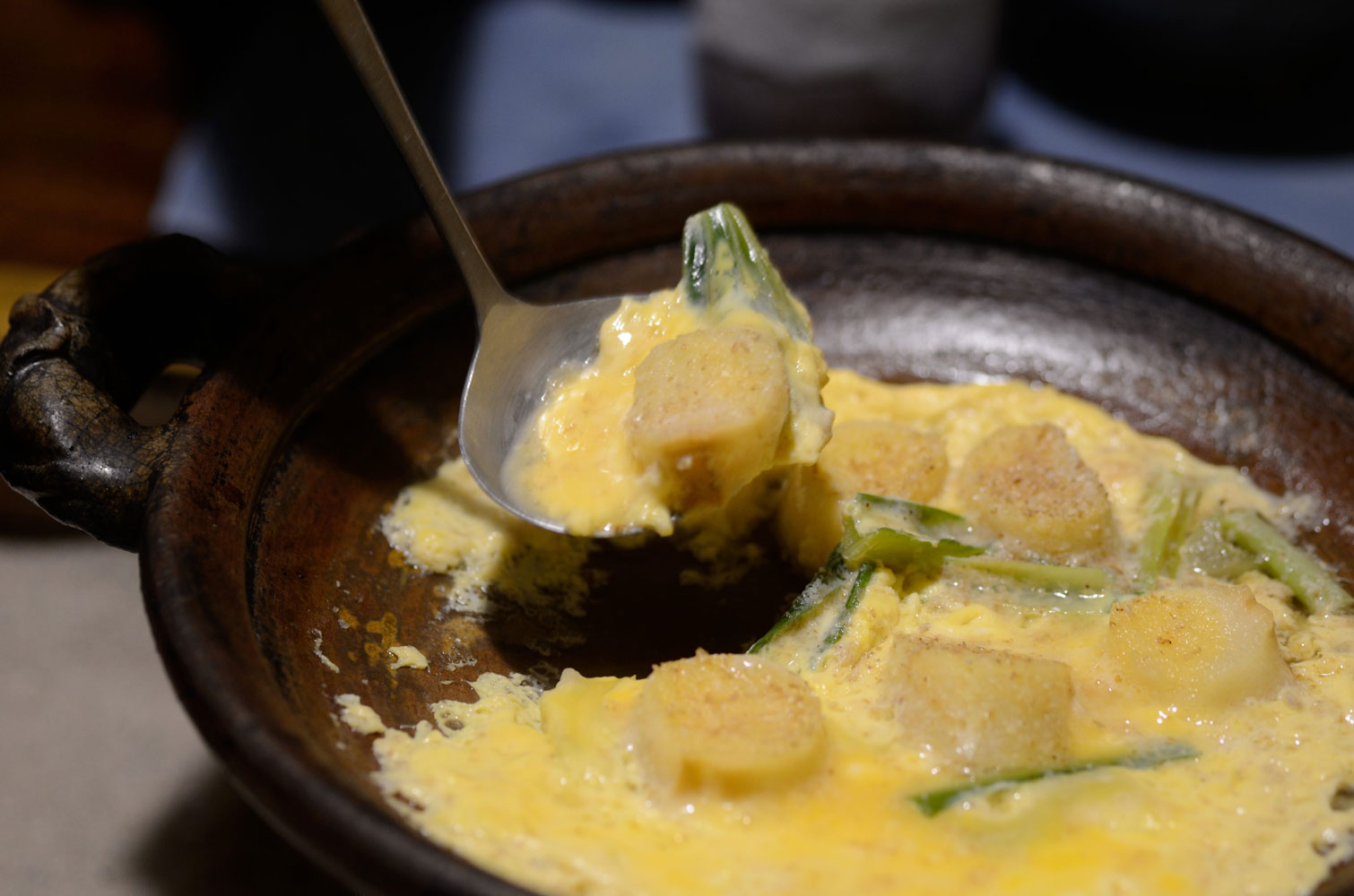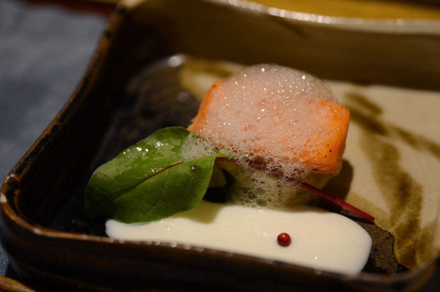 並みの料理なら、あの”食材の王者”に君臨してるような存在感のA5等級の飛騨牛に、他の料理の印象は吹き飛ばされてしまうはずなのに(いや、でも正直いうと後の岩魚の塩焼きは印象が薄くなったが)、饗家の料理の場合は江間さんの創意から生み出された部分がくっきり心に残っている。そして水面下に流れる、出汁が美味なこと、これにつきる。