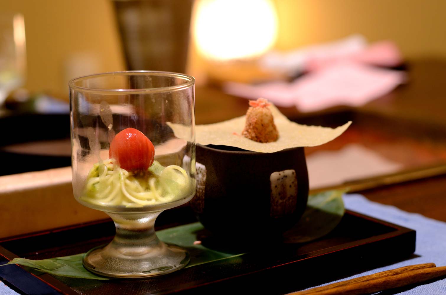 運ばれてくるたびにワクワクをさそう江間さんの料理は、いい意味で「旅館料理っぽくない」。