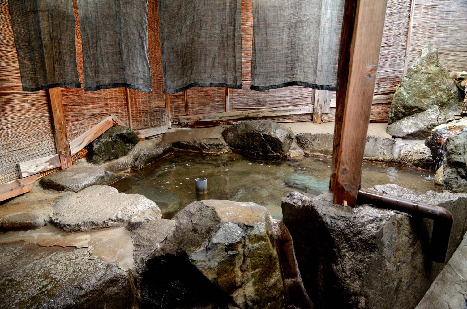 ここは母屋の桧の湯。階段下りてすぐなのがうれしい。