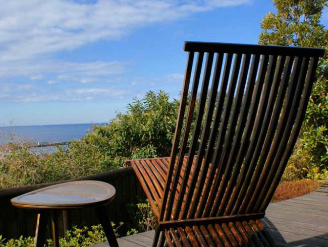 西伊豆・土肥温泉に2005年3月にオープンしたばかりのこの宿は、森の入り江と海の入り江が隣り合った高台に佇んで