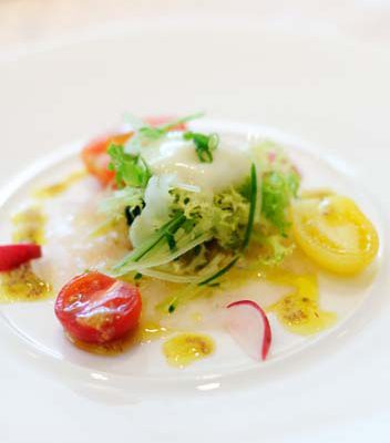 4. 魚恵の創作料理についてレポートの中で「創作料理」という言葉を使いましたが、ちっとこれが誤解を生んでいる気がしましたので補足です。私は2ヶ月にいっぺんくらいのペースで食べに行っており、それだけ気に入ってますから、私のプライベートなお客さんが県外からいらっしゃるときはたいていここで料理を頂きます。中にはかなり舌の肥えた(と私が思っている)方々もお連れしますが、みなさん概ね喜んでくださっているようです。創作料理という言葉がもしかして都会の洒落た創作ダイニングで出されるような料理をイメージさせてしまっていたかもしれません。料理にはいろいろなスタイルがあります。伝統に裏打ちされた正統な懐石料理から創意工夫の創作料理まで。手を変え品を変え、多様な素材を取り合わせて作り上げていくのが創作料理だとすれば魚恵のはたしかに創作料理ではありません。食材は極めてシンプルです。魚(ただし種類は沢山あります)・野菜・山野草です。ほとんどこれだけです。ギター、ベース、ドラムのシンプルなジャズユニットのようです。オーケストラではありません。魚恵の料理は即興の妙にあります。たいていの宿では、念入りに構成を考えてメニューをつくり、一つの完成品ができるとそれを一定期間だしつづます。食材の状況で小さな変更はありますが一度メニューが決まれば一定期間ほぼ同様の料理がつくられます。一部だけ大きな変更をすると全体のバランスが崩れますし、料理を説明するスタッフだってついていけません。ですから料理に力をいれている宿でもメニューの変更は1ヶ月に1回ほどで2回変更するれ相当がんばっている宿です。(ただしメニューの変更の数が料理の良し悪しを決めるのではなくあくまでスタイルの問題です。)いっぽう魚恵の料理はというと決まったメニューはありません。どんな魚が水揚げされるのか、当日の朝、市場に行くまでわかりません。もちろん下ごしらえもありますから、おおまかな流れはあるのでしょうけど、板場に立つ浜出さんは、瞬間、瞬間ののひらめきで料理し、盛り付けます。氏がこだわるのは「季節感」。野と山で見た風景などをイメージしながらその日揚がった魚と畑の野菜、山から採ってきた山野草を皿と言う小宇宙に映し出すかがこの宿の料理の肝です。ですから珍な食材や奇をてらった演出もありません。そのシンプルな素材だけで即興的につくる料理はさらりと描いた墨蹟のようであり、時間をかけて作り上げる油絵とは異なりますが、これもまた味わい深いものです。魚恵の料理の味わいどころは、ここではないでしょうか。