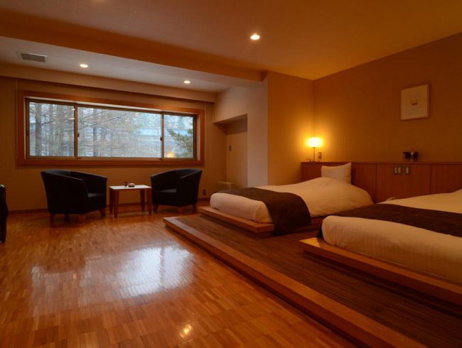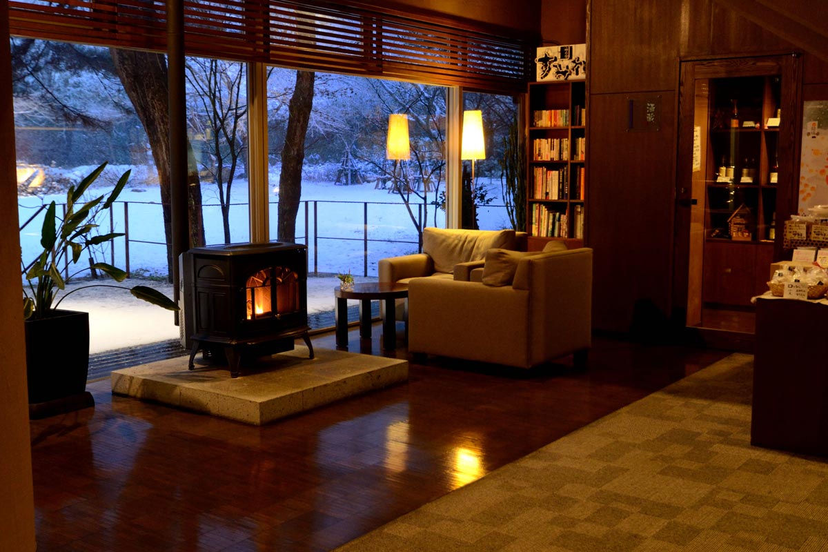 雪の舞う針葉樹の並木のアプローチの先に車を止めると、すぐに黒っぽいコート姿の男性スタッフが迎えにでてくれた。荷