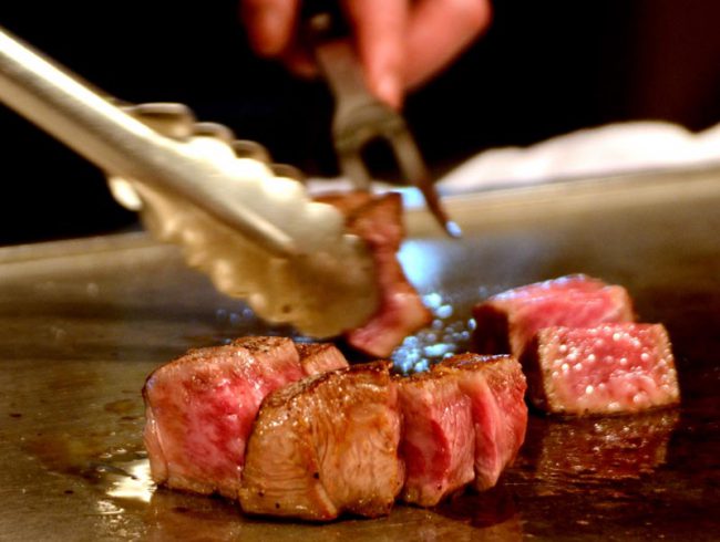 カウンター席の特権、それは ステーキを焼くところを目の前で見れること 肉が立つ!