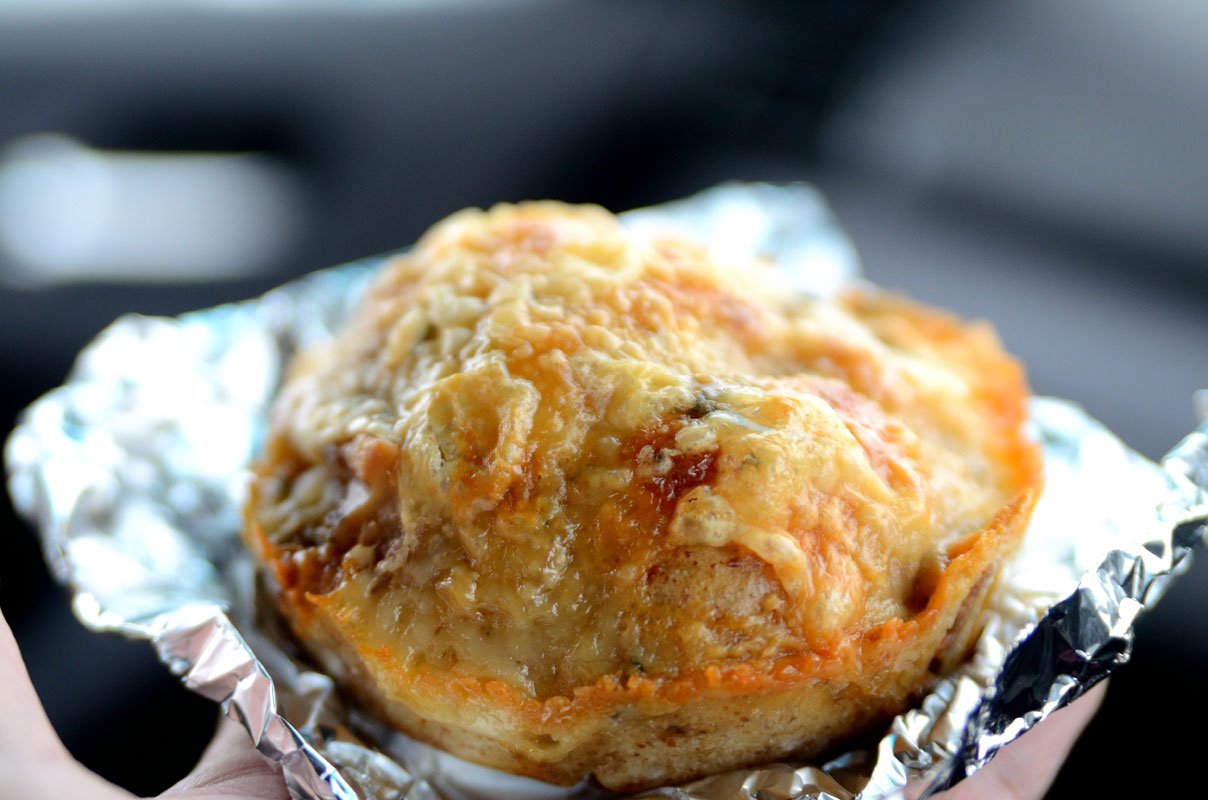 ゴルゴンゾーラはちょうど焼きあがったばかりだったんで車の中フライング。