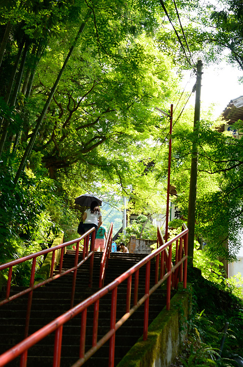 素麺屋さんを物色しながら階段を登ってる。