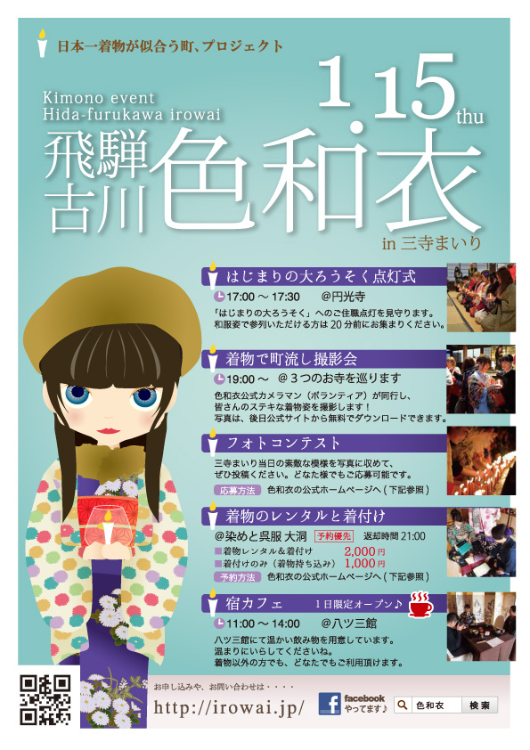 1/15(木)。タビエルが首謀者の一人として活動する「色和衣」という集りが、飛騨古川で着物にまつわるイベントをします。