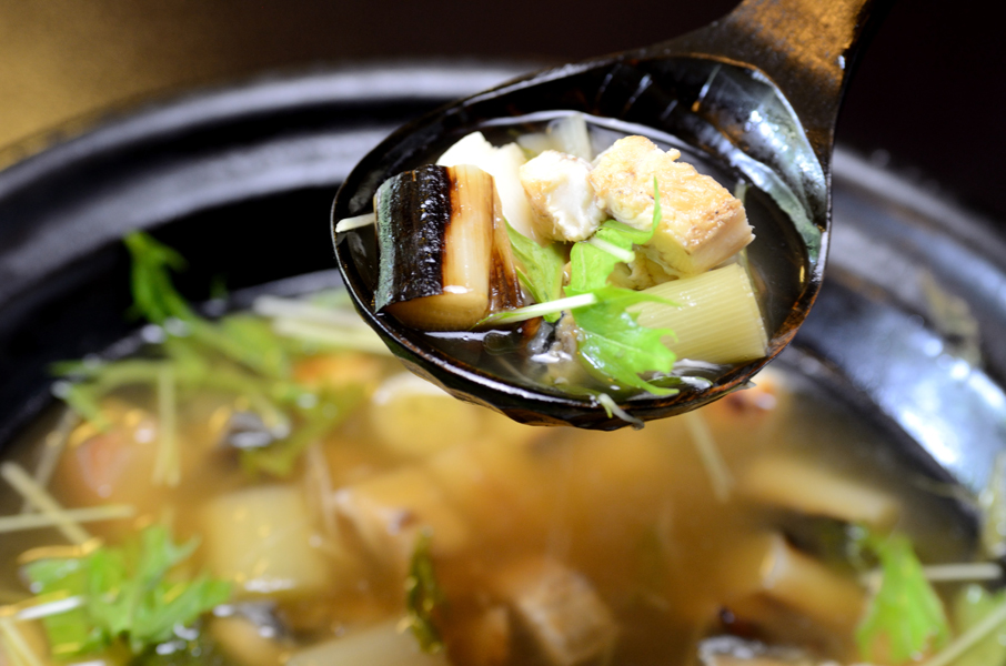 胡蝶の三谷料理長が、すっぽんの丸鍋をヒントに生み出した「うなぎ鍋スープ仕立て」が
