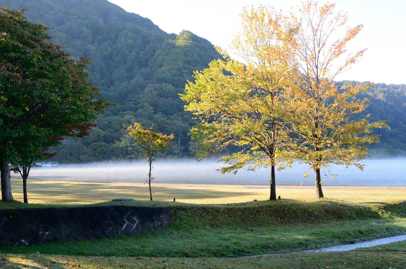 キリッと冷えた空気。朝日で湖面から湯気が昇り、幻想的やった。
