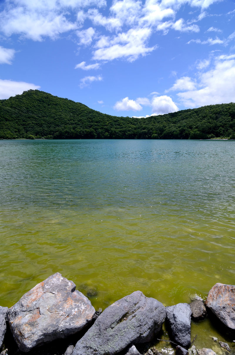 強酸性のため魚は住めないけど、夏場には藻が発生して緑色になるらしい。