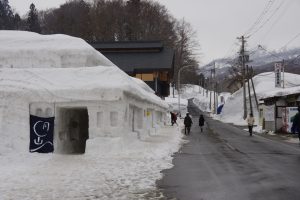 そんな彼の地で地域の青年部の皆さんが9年前、積もりに積もった雪を上から押し固めて削って、昔の三山詣での行者宿を再現した2件の雪旅籠を作ったそうです。