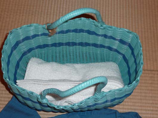 大浴場に行くときにタオルを入れていくこんな籠があって、これは便利でした。