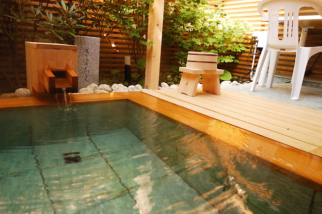 やはり部屋の露天風呂はあの魅力的な3つの貸切の露天風呂の代替とはならず、このお風呂の利用は短時間でした。でもちゃんと掛け流しの温泉なんですよ。