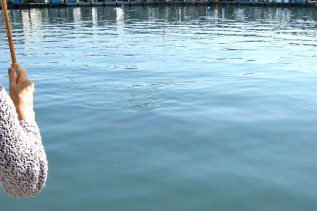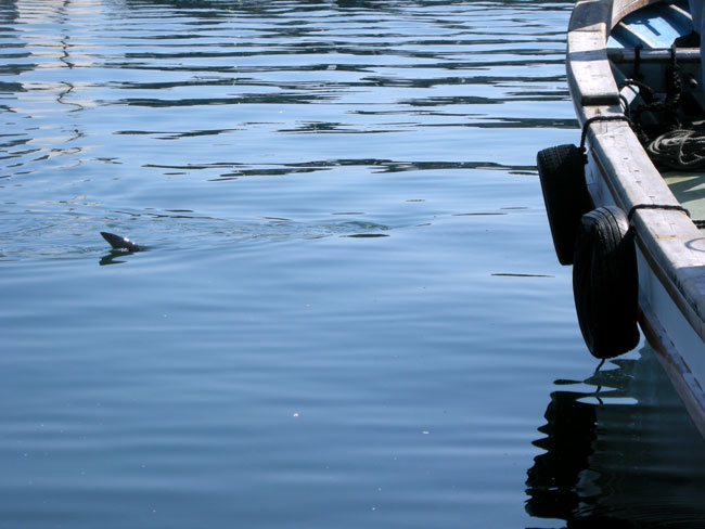 ジンベイザメが氷見の漁港に迷い込んできたのでした。