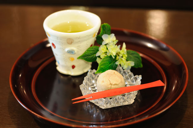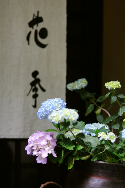 大瓶から生えるアジサイ越しの暖簾に「花季」の字を確認して、格子戸をあける。