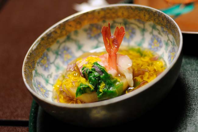 大根の上にフォアグラと甘えび、これがめちゃ旨でした。
