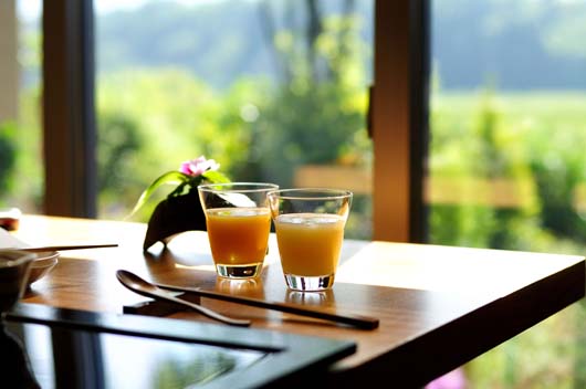 「天気がいいので、空けましょうか?」とご主人。穏やかな風がまどろむ肌をなでる。鳥のさえずり、遠くにトラクターの音が聞こえる。里ならではこそ。