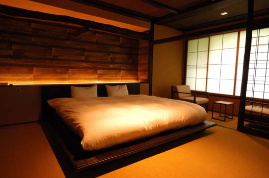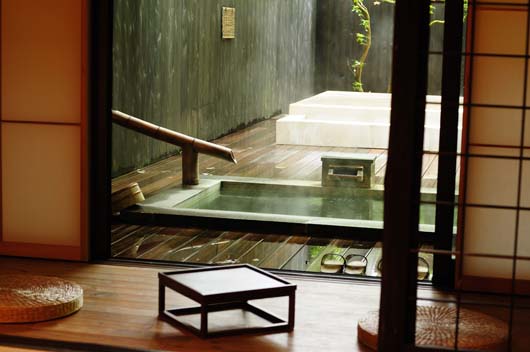 部屋に温泉はありませんが、かなりゆったりな気分を味わえます。古いものが土台にあるのだろうがそれが見事にモダンに仕上がっていて、しかもベッドルームがあるから、使い勝手もかなりいい。