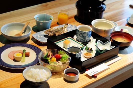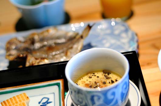朝食です。昨晩と同じ半個室の食事処でいただきます。