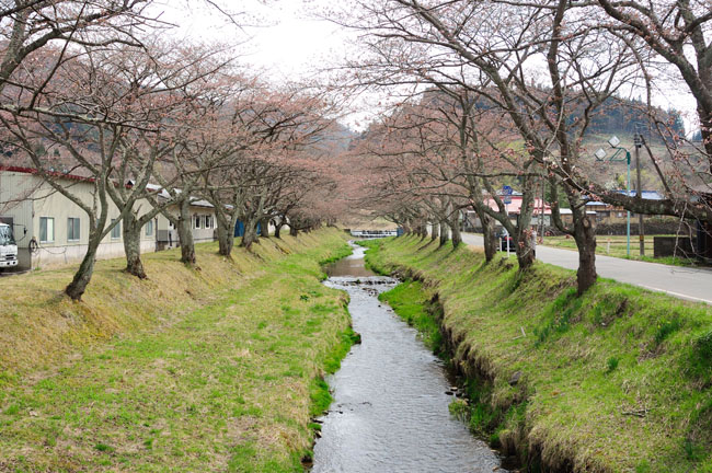 川渡温泉の中心の桜並木。きっとGWには桜が満開になっていたことでしょう。