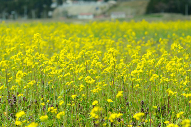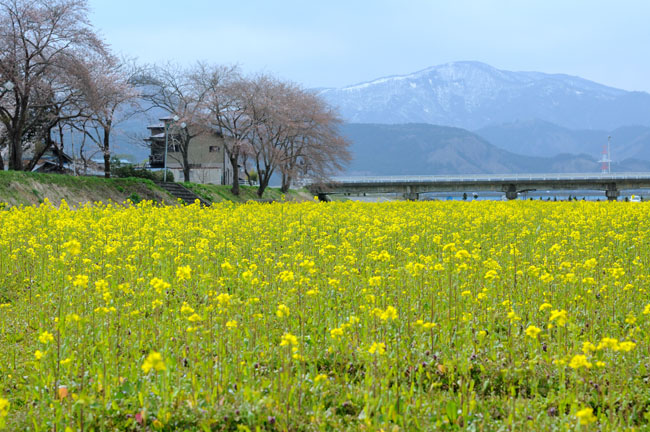 桜が咲いたら桜色、菜の花の黄色、山の雪がいっぺんに見れてきれいなんだろうな。