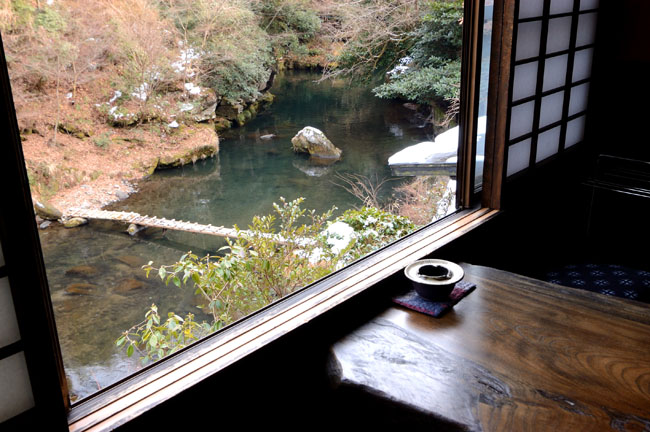 窓からはこんな景色。冬だったので少し寂しげな山。