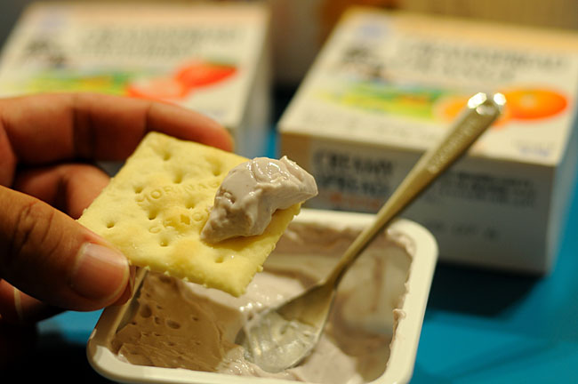 蔵王酪農センターの蔵王クリームチーズをたべているところです。