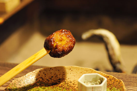 囲炉裏で焼かれた五平餅。