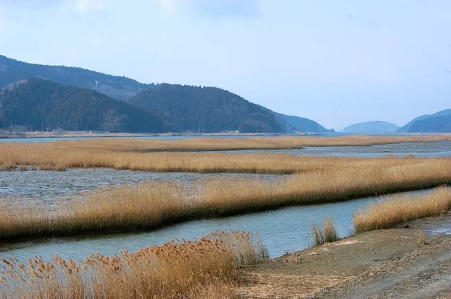 すすきみたいに見えるのは北上川の葭(よし)の群生。あの茅葺き屋根の材料です。