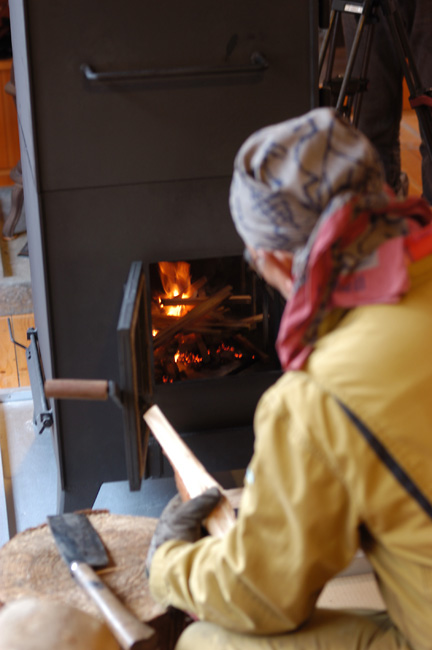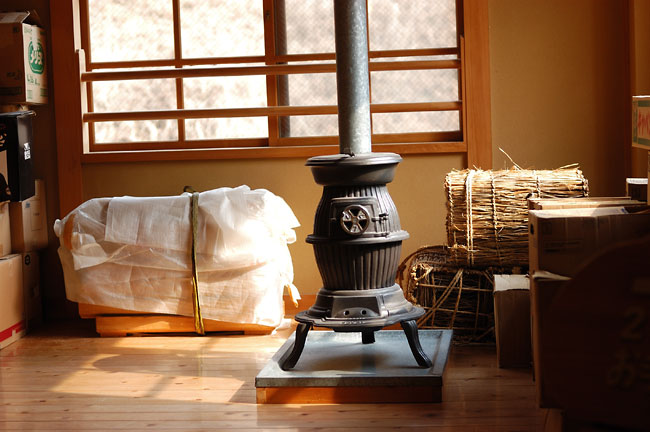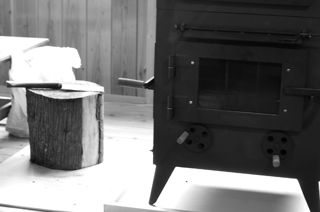 この日から追分温泉に薪ストーブが入ることになり、偶然、火入れ式に立ち会った。
