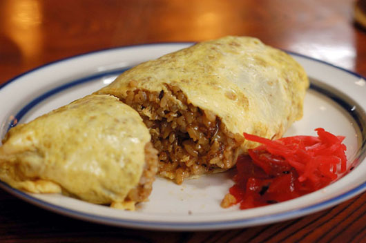 オムライスはライスが醤油で味付けされていて、和風オムライスだ。
