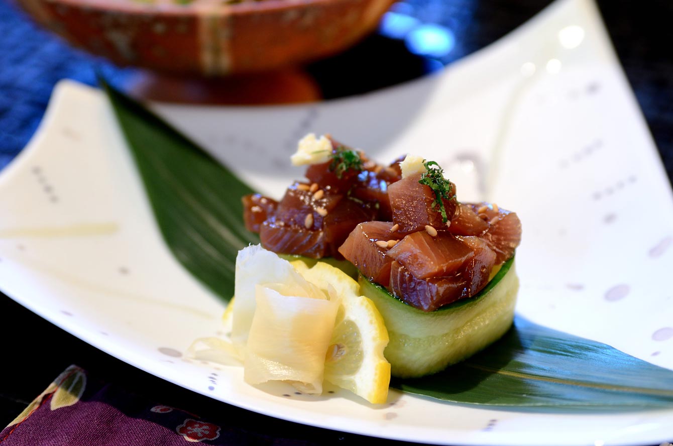 トロ鰹のづけ 胡瓜の軍艦巻き 軍艦巻きでお分かりのとおり、これお鮨になんです。生魚の苦手なはずがぺロリ。