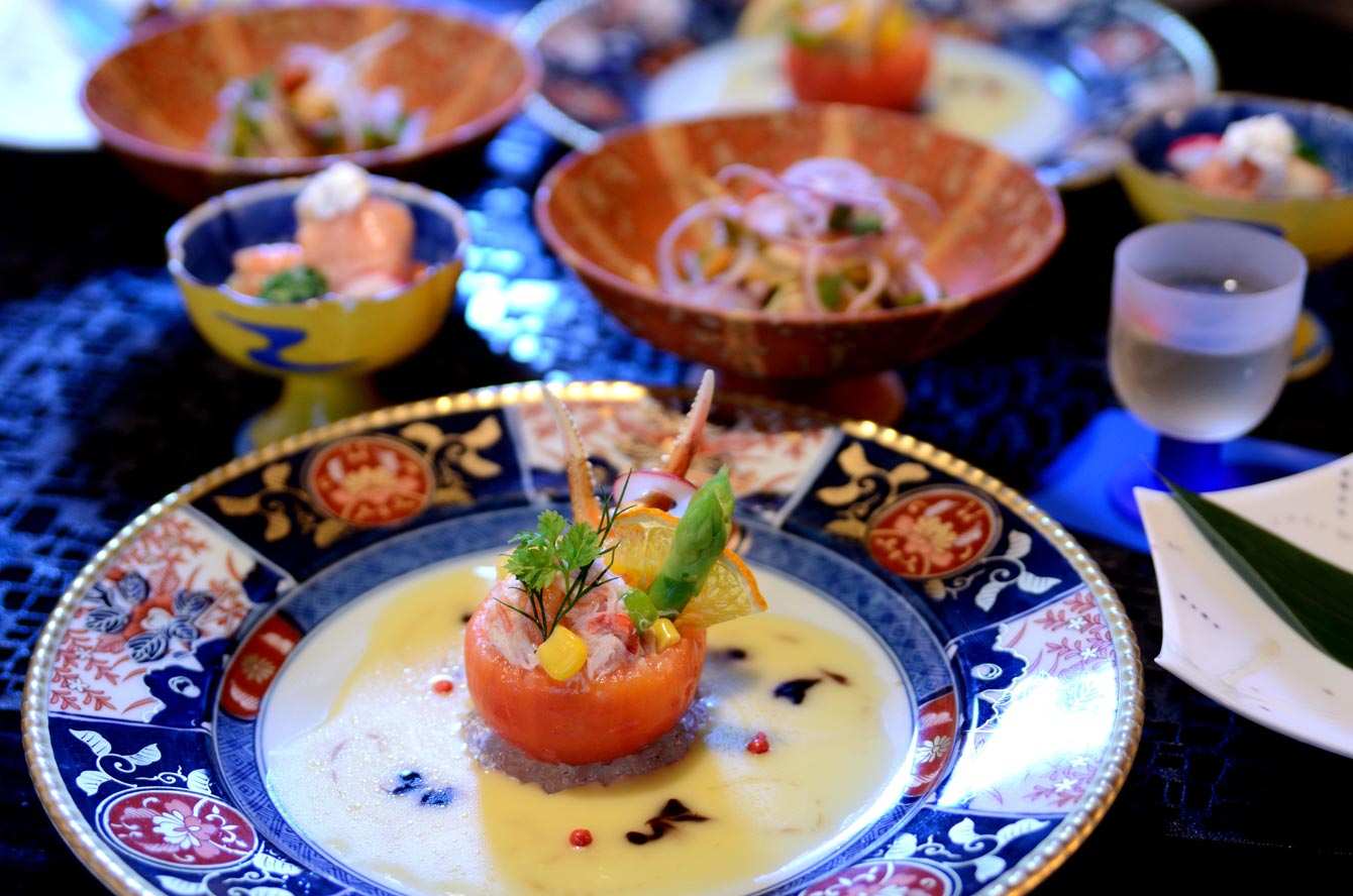 フレンチ出身の橋本シェフのモダン懐石は、和の食材でつくられるフレンチテイストの創作料理。