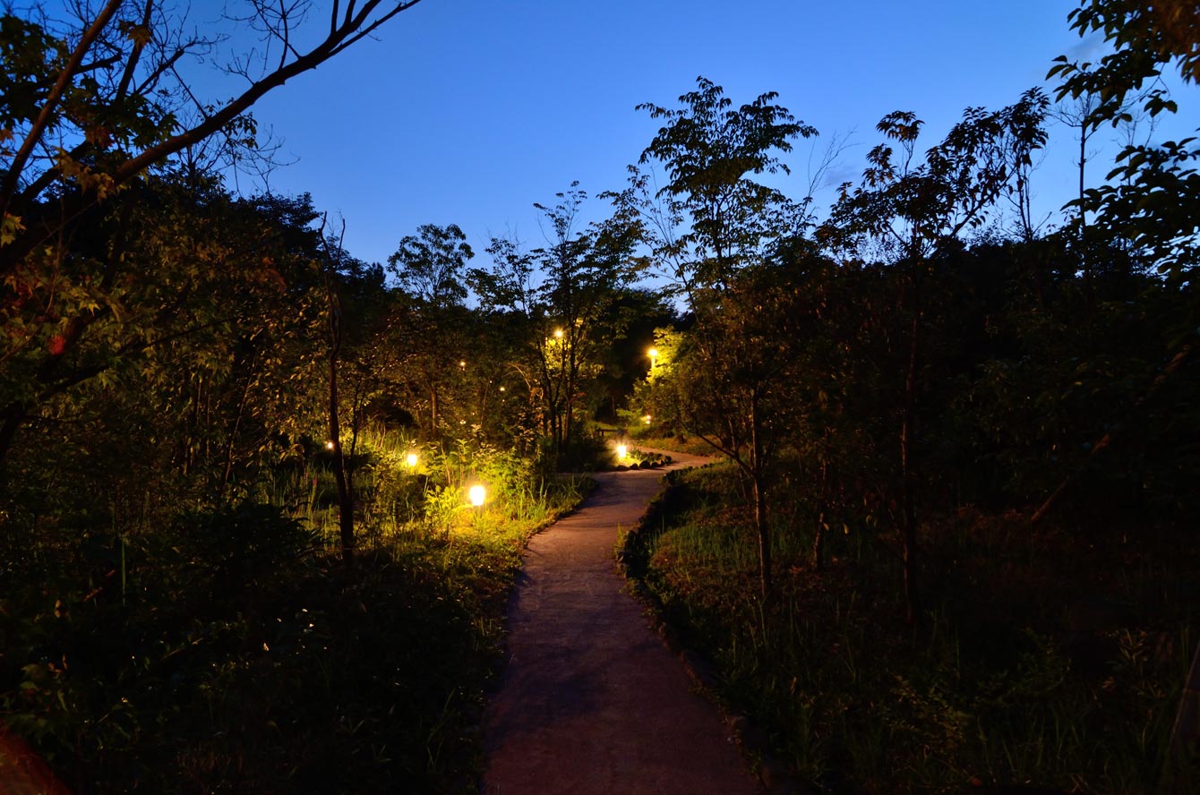 草木の歩道を進んで「はなの音」に案内される。
