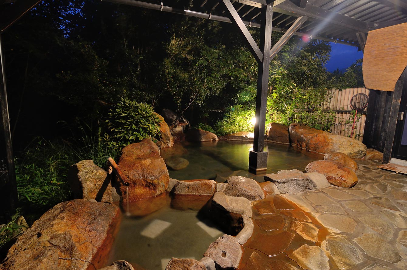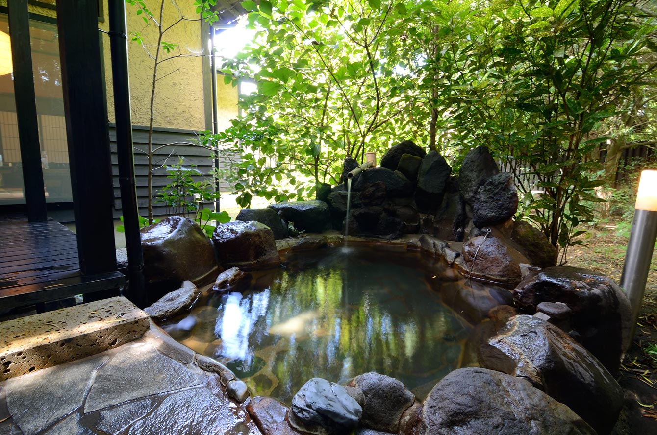 朝風呂 露天風呂→釜風呂→岩盤浴→水風呂という具合のお風呂をハシゴ。驚くことにこれが全部自分の離れにあるのだ。