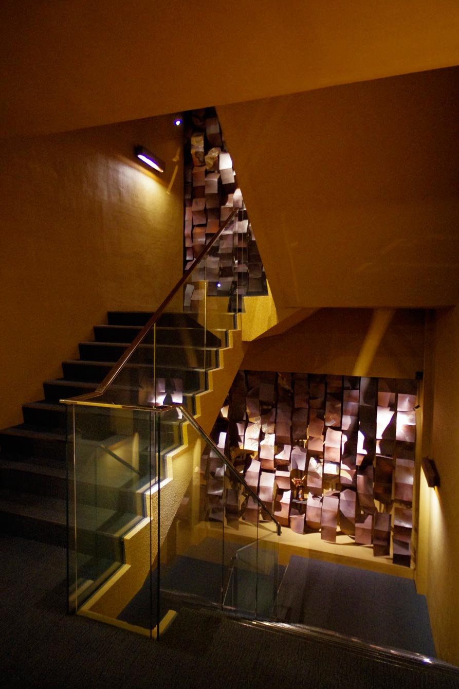 階段というよりも、階段のある空間自体が巨大なアート。本館と新館の階段は完全に違う意匠で作られているので、そこがどこか、間違うことはありません。