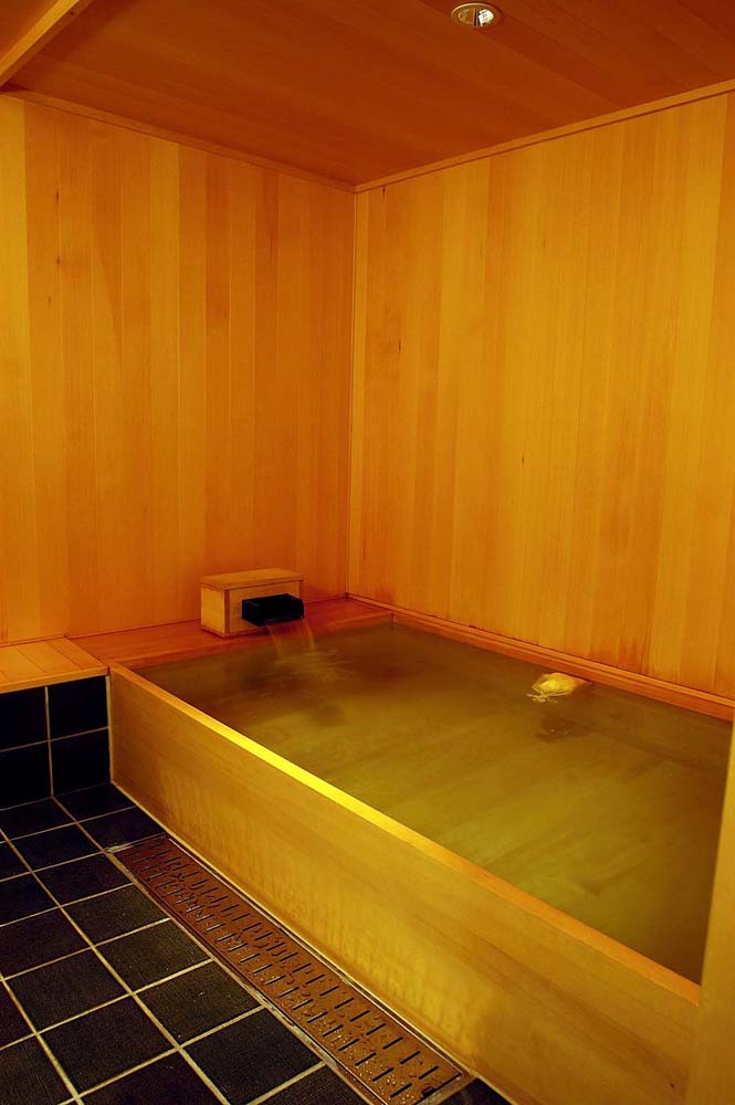 今回はちょっと贅沢して客室に檜風呂あるタイプ。戸を開けると木と柚子の香りが解き放たれたれ極上アロマ。広いわけでもなく、景色が望めるわけでも なかったがこの柚子の香りと朝日の光線がすがすがしく、いつもより何倍も価値ある朝にしてくれた。