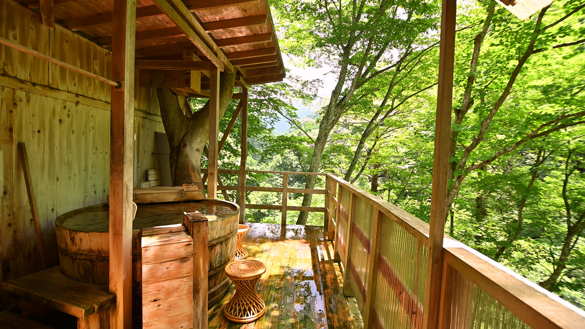 行きつく先に、谷あいを見下ろすような場所に2ヶ所の貸切風呂があります。
