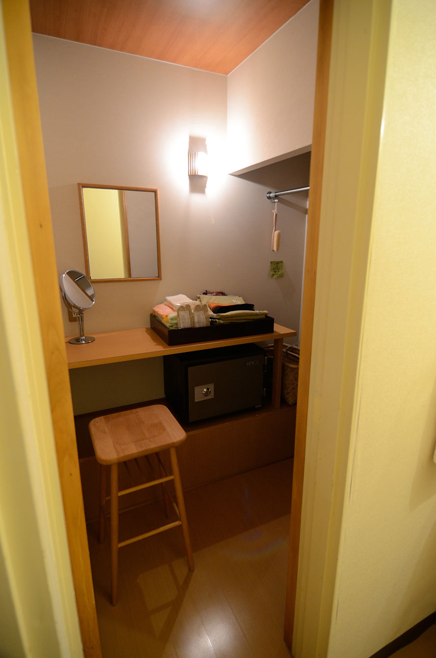 部屋を物色中の連れは、おしゃれな洗面台と広いウォークインクローゼットにすっかりご満悦だ。