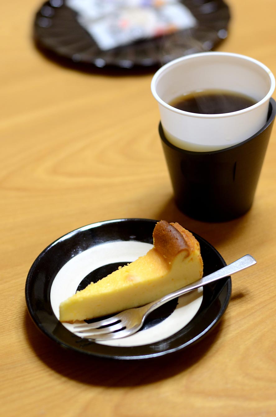 荷物を片付けたりしていたら、部屋にチーズケーキが運ばれてきた!