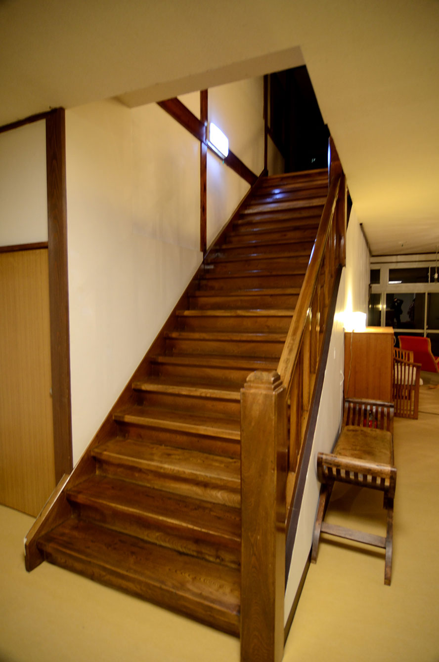ここは昔のエントランスちかくと思われるとこの階段。昔っぽさとかわいいカフェのような雰囲気が同居している。