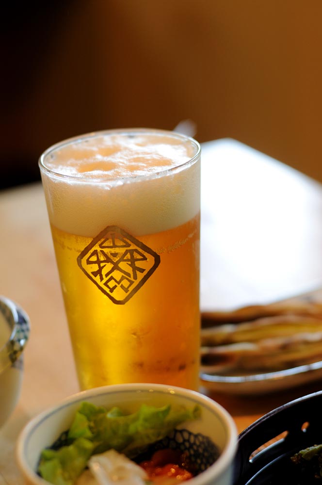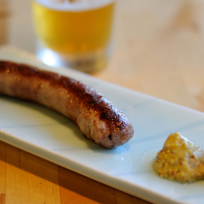 別注した「ベルツ」のソーセージ。問答無用に旨い。連れは問答無用で生ビールだ。