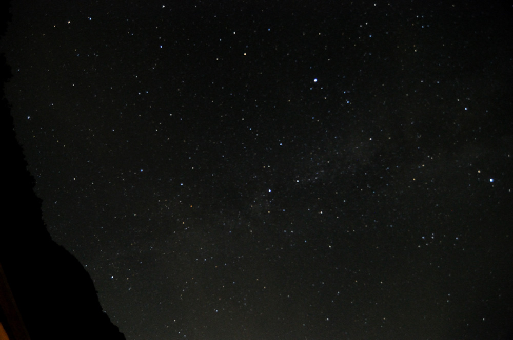 寝る前にもう一度風呂に行ってみようと、通路をぶらぶらいるいていてふと空を見上げてみると、満天の星空。この星空を眺めにくるだけでも価値がありそうだ。