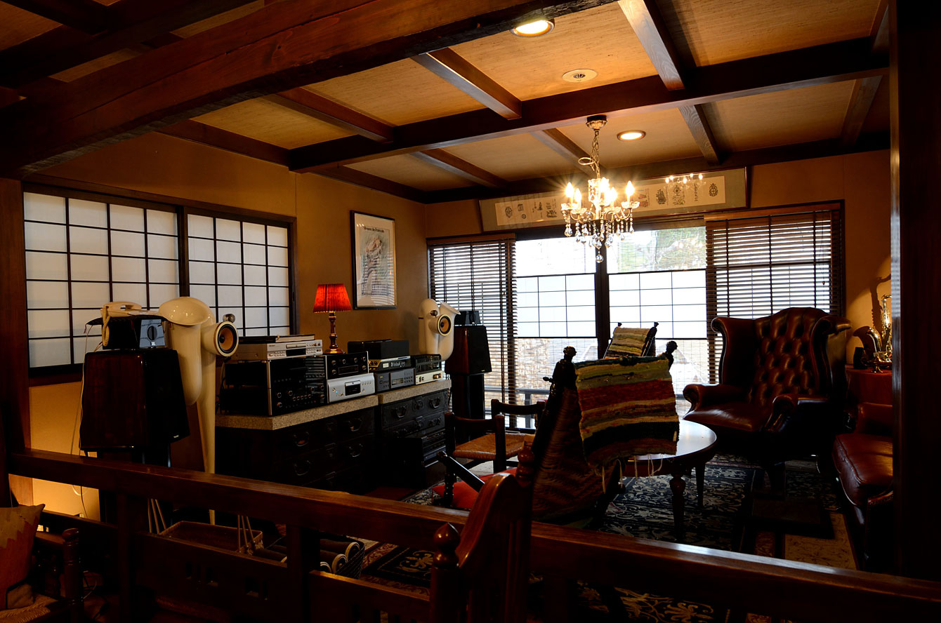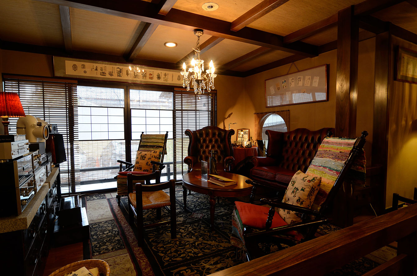到着したらまずここへ。ラウンジは「館主の部屋」というらしい。お客のためというよりは主の趣味が高じたラウンジのような気がする。高そうなオーディオ類が積みあがりジャズが鳴っている。ここは話をする場所というよりは音楽を聴く場所と言ったほうがいい(それくらい音量がでかい)。