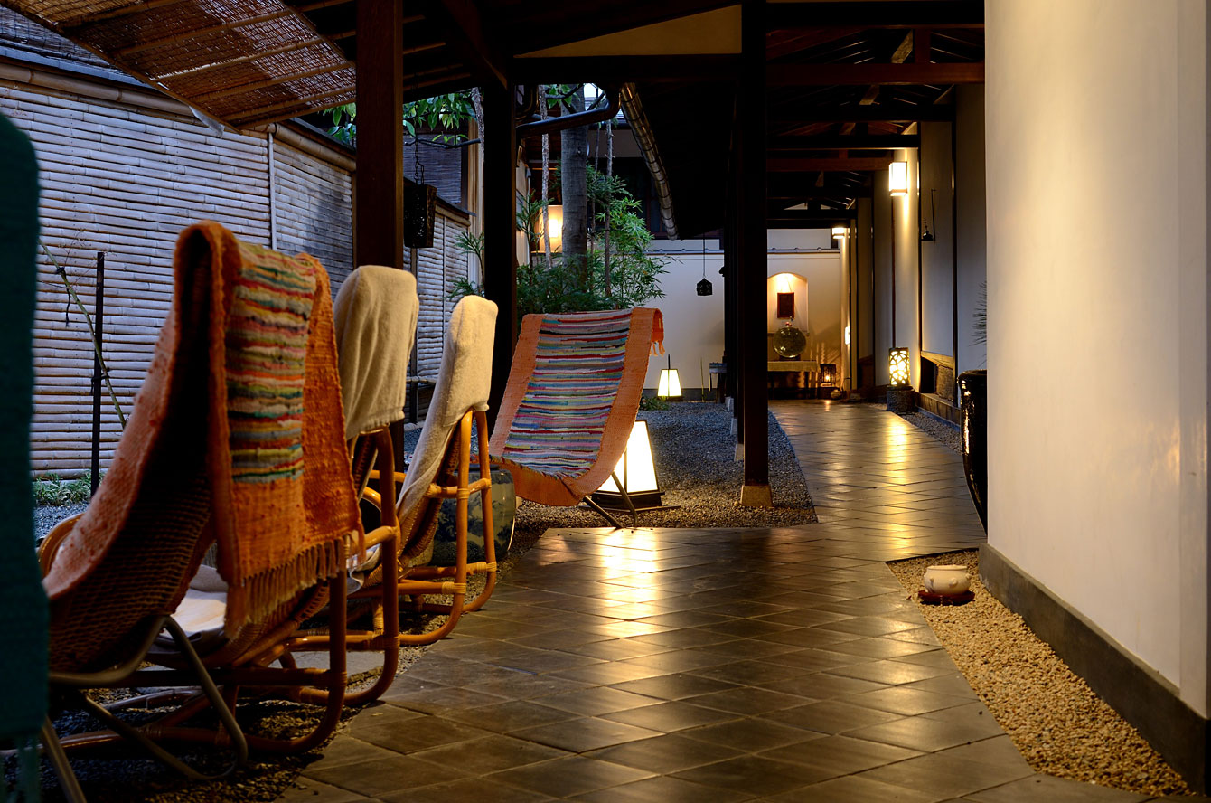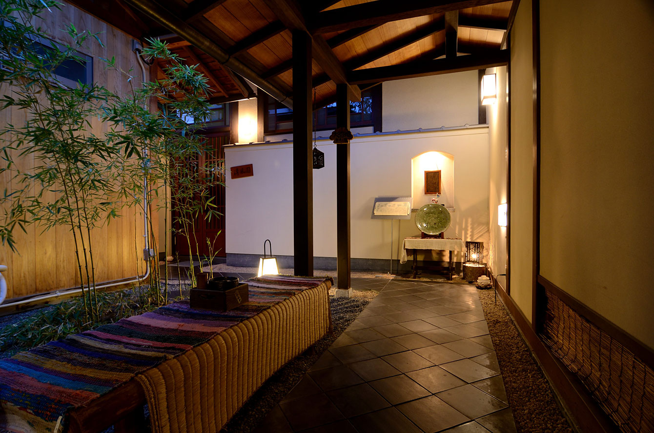 中庭を囲むように宿が建っている。設計は古民家再生の第一人者、あの降幡廣信なのだ。