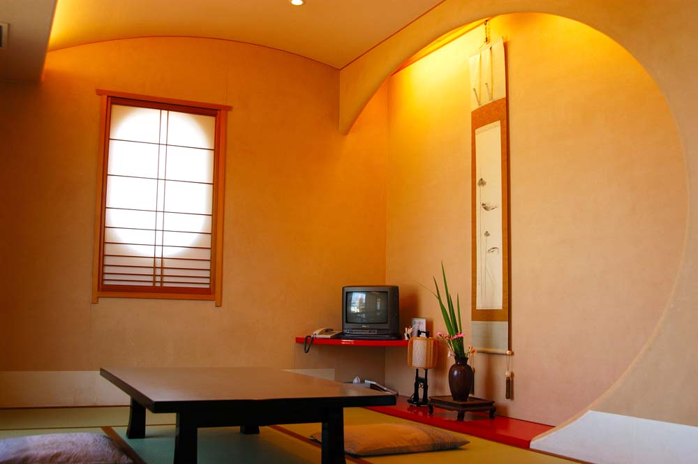 客室6室のうちの一部屋。部屋はそれぞれ趣が異なっていて、こちらもまた民宿とは思えない、気遣いのある造りとなっている。部屋の窓からは海を眺める。
