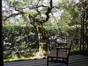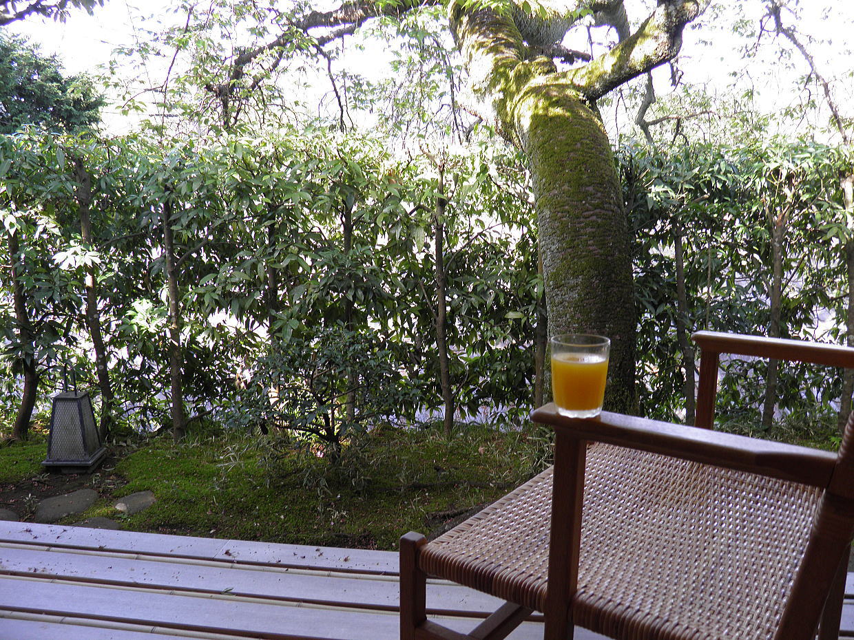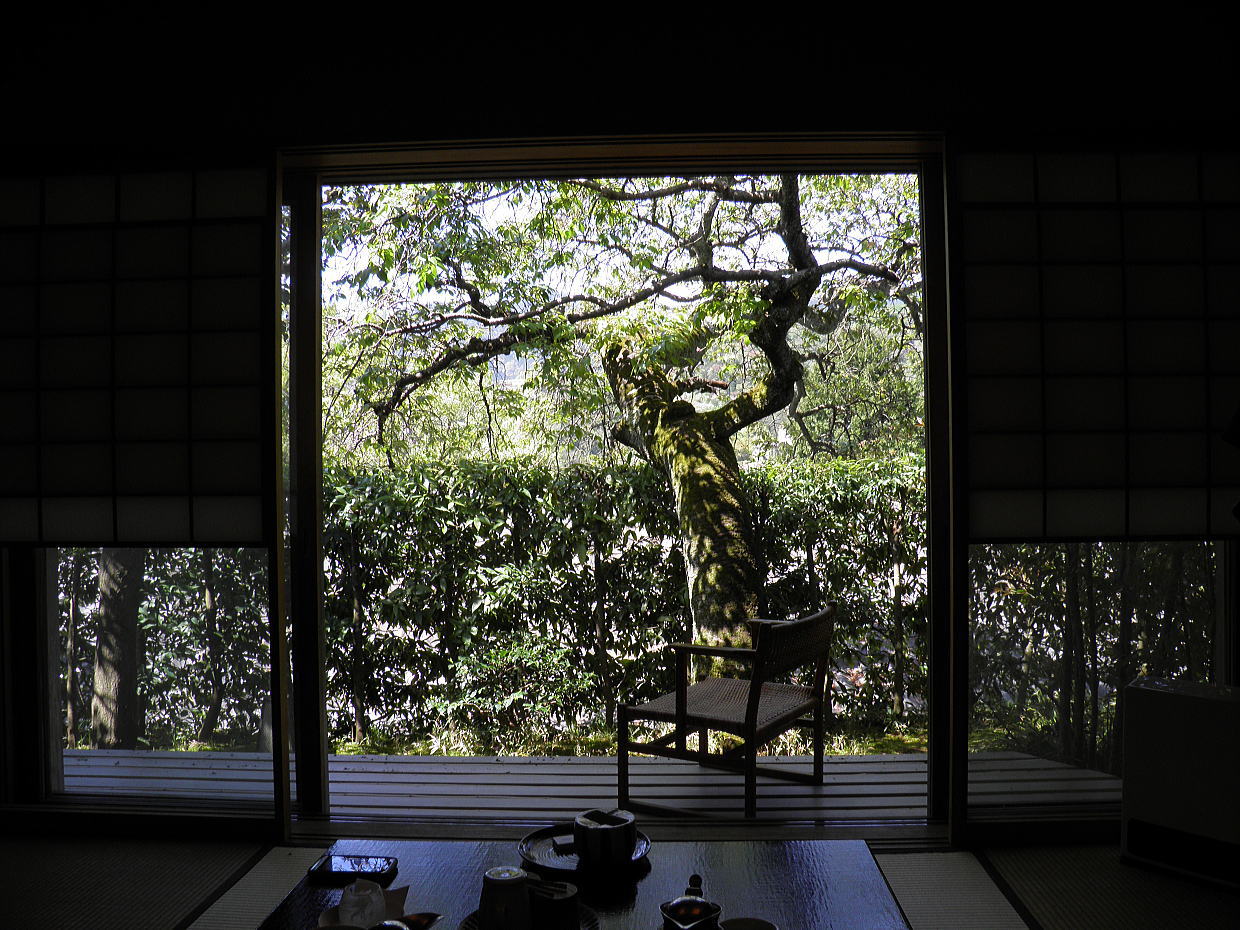 今回は一ヶ月前の予約にも関わらず、一番小さな部屋「桜」しか予約が取れませんでしたが、その名の通り庭の中心に苔むした桜の木がある風情豊かなお部屋です。