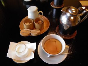 しばし景色を満喫したあと、件(くだん)の朝食を頂きます。