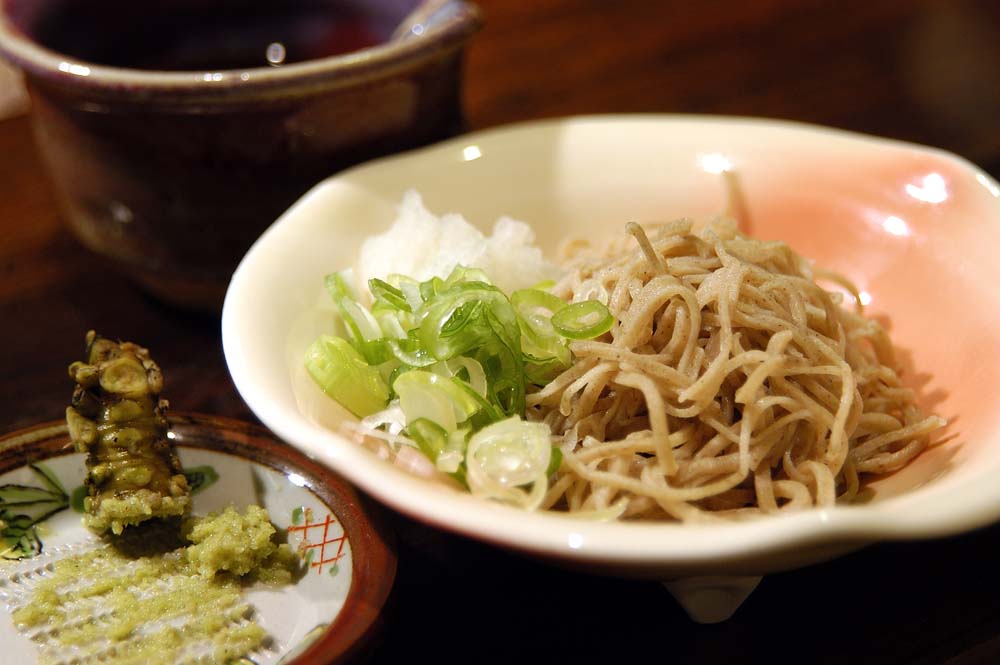 極細に切られた蕎麦は口の中で清々しい。菜の花、うるい、岩魚、ミツナ、えのきの入る「つみくさ鍋」のふたを開けたときの香りが忘れられない。薄味に 徹して旬山菜の味と香りを際立たせる土瓶蒸しのような楽しみ方。付近に生えている山菜を板場が山へ分け入り摘んでくるそうだ。
