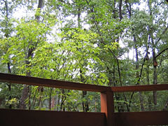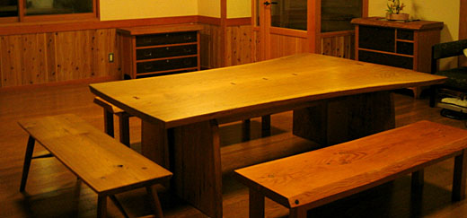 設計は安曇野在住の建築家、萬羽増雄氏が手がけた。敷地の特徴や自然の樹木を活かして設計され、建築自体も自然に同化しているかのようだ