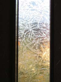 ラウンジの外壁、ロビーのステンドグラス、通路のレリーフ硝子など随所に卓越したセンスが光る。